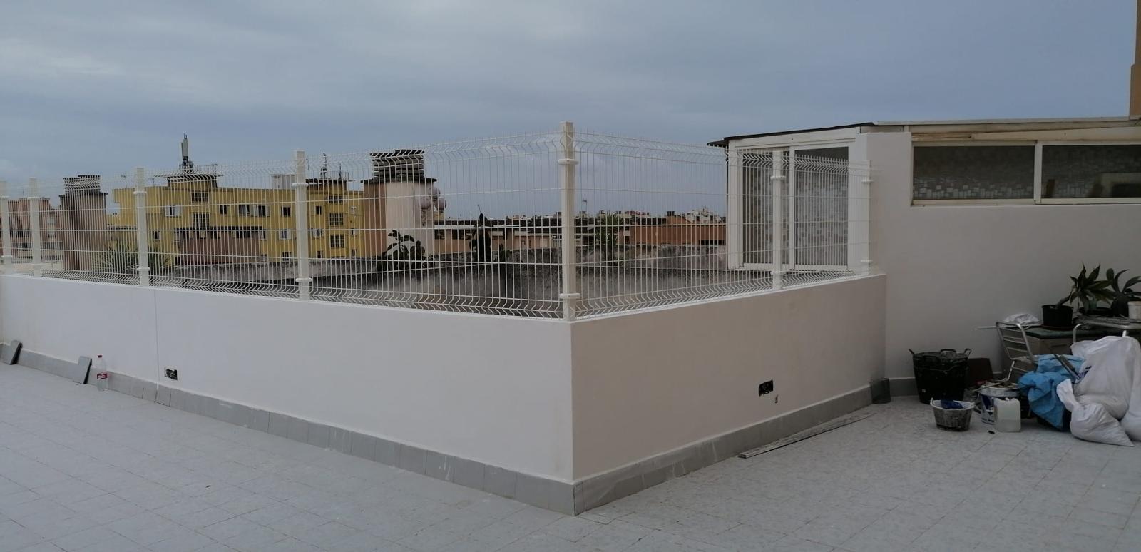 Una vecina de una comunidad de propietarios dispone de una terraza comunitaria de uso privativo, en la cual ha decidido realizar unas reformas de forma particular debido al mal estado de la misma, como podrán visualizar en las fotografías que les remito han puesto una especie de verja de hierro y la vecina del edificio colindante le está poniendo algunas pegas, el tema es que una parte de la terraza de la vecina colinda con la terraza de nuestra propietaria.